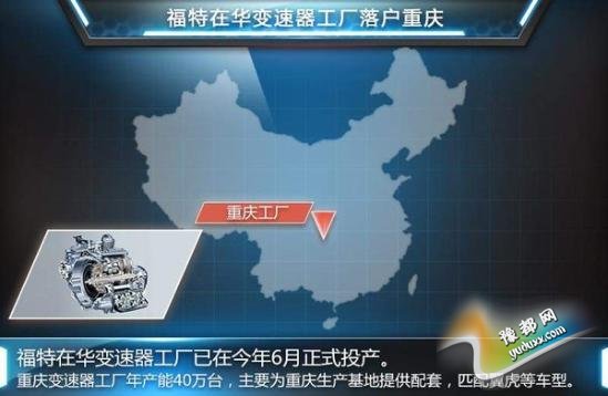 除发动机外,福特的变速器也已实现国产。福特在华首家变速器工厂落户重庆,已于今年6月正式投产。新工厂目前生产6速自动变速器,初期年产能为40万,主要为福特重庆生产基地提供配套,匹配蒙迪欧、致胜、麦柯斯、翼虎等车型。