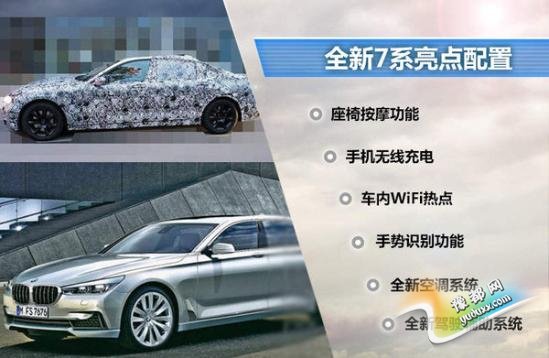 宝马新一代7系将是一款具有革命意义的车型,将搭宝马未来多项新技术。宝马为此改变了研发定名规则内部代号G11,以此替代了现款车型以F打头的内部代号。新一代7系主要有三大技术亮点,第一、轻量化水平将达到前所未有的水平、大量使用碳纤维材料、预计将比老款减重460斤,在尺寸继续增大的情况下,达到当前5系的车重。第二、首次在D级车搭载小排量四缸2.0T引擎、并且配备插电式混动系统,在纯电动的模式下,大约可行驶30公里的路程。搭载同款2.0T插电式混合动力发动机的X5车型,宝马官方提供的数据百公里油耗只有3.8L。考虑到新7系轻量化后比X5自重还要轻很多,将非常轻松达到百公里油耗3.8L。第三、互联驾驶继续升级,通过手机安装的APP能够远程操控车辆及读取数据。