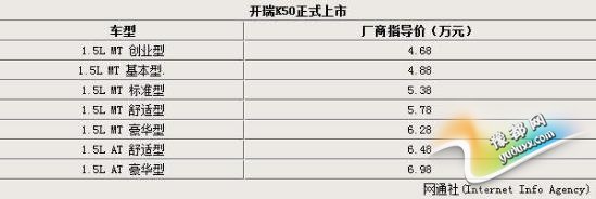 《开瑞K50今日上市 售价区间4.68-6.98万》由河南新闻网-豫都网提供,转载请注明出处:http://auto.yuduxx.com/changjia/134775.html,谢谢合作!