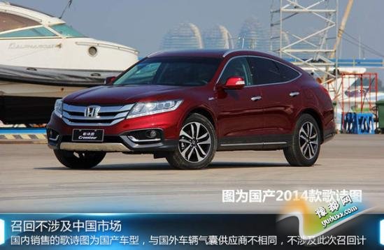 目前国产全新一代歌诗图车型,已于今年4月与国内消费者见面。新车依然与雅阁同平台生产,但是更为动感跨界的外观,让很多人在看到它后,都会觉得眼前一亮。对于国内销售的歌诗图车型是否存在与国外类似的安全隐患,网通社致电广汽本田官方400后得知,国内销售的歌诗图为国产车型,与国外车辆气囊供应商不相同。此外,由于产地不同等因素,国内地区目前暂无歌诗图车型的召回计划。