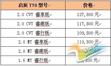 附:启辰T70销售价格