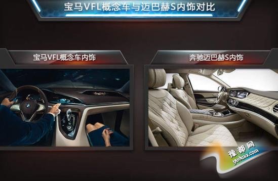 宝马9系作为一款旗舰产品在推出后,梅赛德斯-迈巴赫S级轿车将成为其最为重要的竞争对手。目前后者在车身尺寸方面为5453mm,这也正与宝马VFL概念车的长度相同。在内饰方面,迈巴赫S级轿车秉承奔驰极尽奢华的风格,使用大面积的真皮包裹,十分豪华。未来宝马9系则将采用大量VFL概念车的内饰风格元素,通过分为三部分的仪表盘,全新电子档杆以及中控台让整车充满未来感。