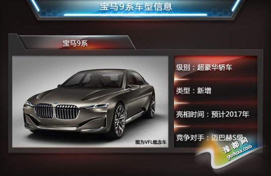 【大河汽车·厂家动态】宝马此前发布了名为BMW Vision Future Luxury Concept的全新概念产品(以下简称VFL概念车),并定位高于现有7系车型。近日大河汽车从芬兰媒体Worldcarfans了解到,目前宝马正对于9系车型的开发进行评估,未来该款旗舰产品有望得到量产。新车型上市后,目前奔驰已推出的全新旗舰产品梅赛德斯-迈巴赫S级则将成为其主要竞争对手。