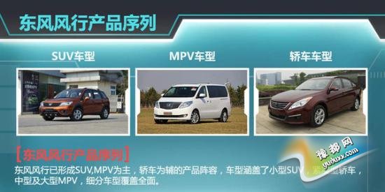 目前东风风行产品序列以SUV,MPV为主,轿车为辅。涵盖了小型SUV,紧凑型轿车,中型及大型MPV,细分车型覆盖全面。在集中发力的2015年,东风风行推出的四款车型进一步将细分车型完善,深化产品布局。