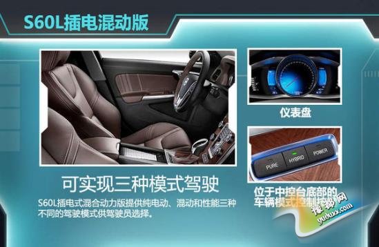 据沃尔沃官方介绍,在不牺牲车辆性能的情况下,沃尔沃S60L插电混动版可实现百公里2L的油耗表现。S60L插电式混合动力版提供纯电动、混动和性能三种不同的驾驶模式供驾驶员选择。位于中控台下方有一个控制面板,驾驶员可在性能、混动和纯电动三种驾驶模式间随意切换。