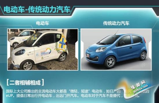 去年特斯拉的热炒,纯电动车“替代”汽车的热度在国内陡然而生。其实,在近两三年了国际汽车科技界已经取得共识:在当下各类新能源车中,只有纯电动车不可能完全“替代”汽车。因为用电虽然比用油便宜环保,但是电池的储能比很低,电动车如果达到一辆卡罗拉的续航里程,需要背负成吨重的电池,如同背着比出行者重十倍的“干粮”出门,有时候就是打趟酱油,是能耗和财力的极大浪费。因此国际上大公司推出的主流电动车大都是“微轻、短途”电动车,如日产的“聆风”,大众的eUP。提倡日常出行开电动车,出远门开汽车。电动车对于汽车不是替代,而是补充。