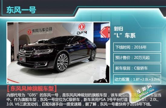 内部代号为“G95”的东风一号,是东风风神规划的旗舰车型,已经在去年的广州车展上亮过相,按照东风的产品规划,东风一号为东风风神L系车型当中的旗舰车型,定位为C级轿车,是东风针对高端细分市场推出的第一款车型。新车采用PSA 3号平台打造,预计搭载1.8T、2.0L、3.0L V6三款发动机,匹配6速手自一提变速箱,据了解,东风一号最快将于2016年初下线。