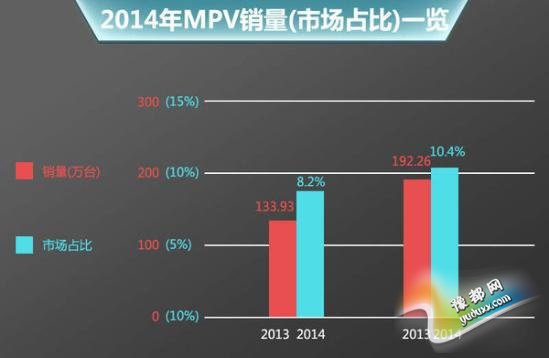 实际上,中国乘用车2014年整体销量达到1970.06万辆,相比2013年同比增长9.89%,低于前年的15.71%。尽管整个市场增速在放缓,但MPV市场的表现,让各大车企看到了自SUV之后的又一有力增长点,市场占比也从8.2%增长至10.4%。日产进口高端MPV此前已推出2015款车型,售价也从66.8万元降低至更为“接地气”的46.8万元,该车作为MPV端仅有的一款产品,未来国产之后对于日产扩大在华市场份额产生积极影响。