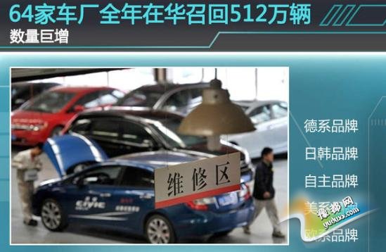 《64家车厂全年在华召回512万辆 数量巨增》由河南新闻网-豫都网提供,转载请注明出处:http://auto.yuduxx.com/changjia/149676.html,谢谢合作!