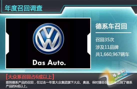提到德系产品的召回,在过去一年里大众集团旗下大众、奥迪、保时捷总召回数量占到了德系产品的6成以上。其中又以大众在中国的耦合式后桥缺陷为重。在3月10日大众在华联合一汽大众召开媒体通气会,宣布已经有超过52%的速腾、甲壳虫车主在2月2日启动召回后的一个多月内完成了召回。