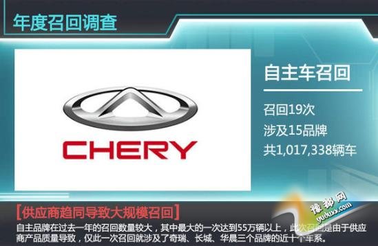 自主品牌在过去一年有15只品牌宣布了总计19次的召回;涉及到缺陷产品超过101.7万台/次;美系品牌虽然仅有8个但去年宣布的召回次数却高达30次,涉及缺陷产品超过85万辆;除去德国品牌之外的其他欧洲品牌有9个,宣布16次召回,但涉及的产品总量仅为33.8万台。