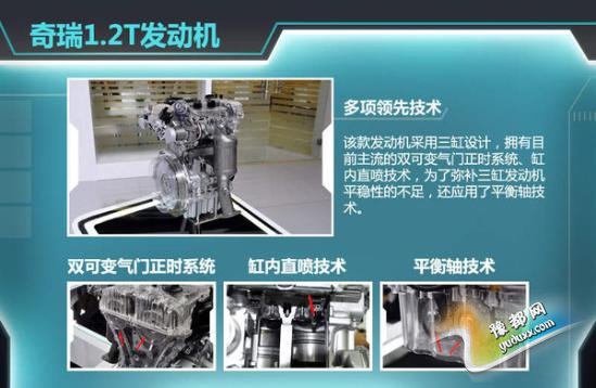 此次全新的1.2T发动机是基于当今节能减排的大趋势所打造的高效动力系统,是奇瑞汽车经过与国内知名高校进行合作的最新成果,以奇瑞汽车股份有限公司为主进行研发,奇瑞拥有全部自主知识产权。该款发动机采用三缸设计,拥有目前主流的双可变气门正时系统、缸内直喷技术,为了弥补三缸发动机平稳性的不足,还应用了平衡轴技术。发动机最大功率97KW,峰值扭矩达到了212N.m,值得一提的是,该款发动机在参数方面与大众1.2T发动机相比更具优势,与同行业内其他1.2T发动机相比,也丝毫不落下风。