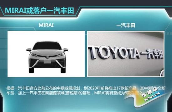 据国家知识产权局信息显示,丰田在国内注册MIRAI专利申报图目前已得到授权使用。值得一提的是,一汽丰田官方此前公布的中期发展规划中,到2020年前将推出17款新产品,其中9款为全新车型,另外8款为改款或换代车型,基于一汽丰田在新能源车领域的市场基础(率先推出混动车型普锐斯),该车将有望通过一汽丰田渠道销售。