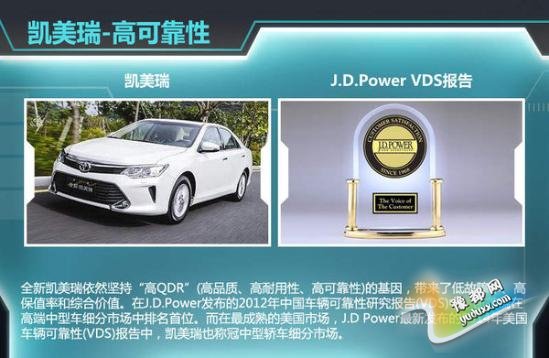 当然,广汽丰田有着这样的魄力也不是心血来潮,推出的免费保养政策的关键还是基于广汽丰田全新凯美瑞的优异的产品品质。全新凯美瑞依然坚持“高QDR”(高品质、高耐用性、高可靠性)的基因,带来了低故障率、高保值率和综合价值。在J.D.Power发布的2012年中国车辆可靠性研究报告(VDS)中,凯美瑞在高端中型车细分市场中排名首位。而在最成熟的美国市场,J.D Power最新发布的2014年美国车辆可靠性(VDS)报告中,凯美瑞也称冠中型轿车细分市场。