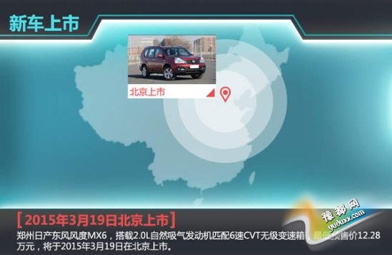 根据郑州日产官方此前公布的信息,其将在2015年-2017年,面向市场推出五款新车型,其中东风品牌包括一款SUV、一款MPV和一款CDV。值得一提的是,MX6便是其中的首款车型,该车对于郑州日产进军紧凑型SUV市场具有战略性意义。