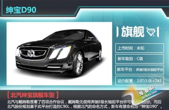 在2013年,北汽与戴姆勒签署了四项合作协议,戴姆勒无偿将奔驰E级长轴距平台许可给北汽股份。而后北汽股份规划基于此平台打造的C90L,根据北汽的命名方式,新车有望命名为“绅宝D90”。届时,基于上一代奔驰E级平台打造的绅宝D90轴距将超3000mm,有望搭载奔驰E级1.8T涡轮增压发动机、3.0L自然吸气发动机,匹配7速自动变速箱,共享动力总成。