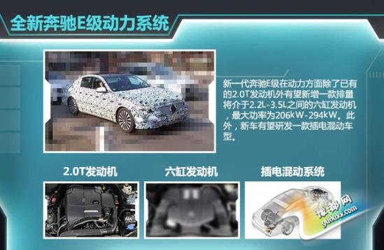 新一代奔驰E级在动力方面将提供多款汽油与柴油发动机,汽油版除了已有的2.0T发动机外有望新增一款排量将介于2.2L-3.5L之间的六缸发动机,最大功率为206kW-294kW,其高性能车型E63 AMG将搭载4.0T V8双涡轮增压发动机。传动系统方面,与之匹配的是一台9速自动变速器。此外,新车有望研发一款插电混动车型,该车可享受国家新能源车型补贴。(网通社 2015年2月24日 北京报道)