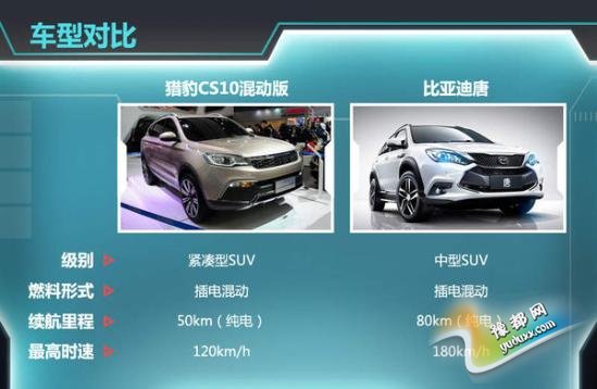 目前国内的插电混动SUV只有比亚迪唐一款,其搭载2.0升的涡轮增压发动机和最大功率为110kw的电动机,纯电动模式下最大续航里程为80km。官方宣称的4.9秒的百公里加速以及其先进的设计理念,都使比亚迪唐成为了插电混动车型中的佼佼者。而猎豹的CS10插电式混动SUV上市后,必然会与其直面交锋。