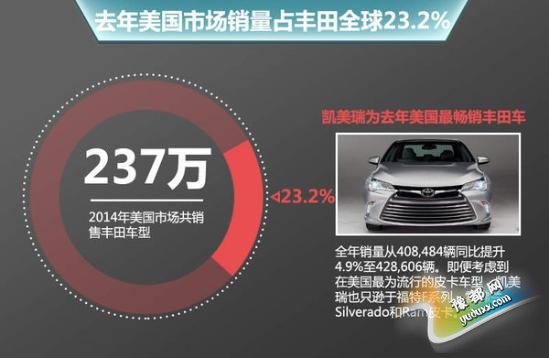 据统计,去年,包括旗下大发工业和日野汽车在内,丰田汽车集团全球销量为1023万辆,其中美国市场共销售了2,373,771辆新车,同比增长6.2%。丰田凯美瑞仍然是美国市场最畅销的轿车车型,全年销量从408,484辆同比提升4.9%至428,606辆。即便考虑到在美国最为流行的皮卡车型,凯美瑞的销量也只逊于福特F系列、雪佛兰Silverado和Ram皮卡。