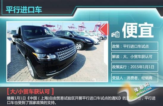 随着1月1日《中国(上海)自由贸易试验区开展平行进口车试点的通知》的正式出台,平行进口车也受到了国家政策的支持。并提出了三大“关键性”指标,分别规定了申办平行进口车的企业资质、销售平行进口车的经销商需承担召回、质保以及三包政策、禁止进口二手车和非法改装车。