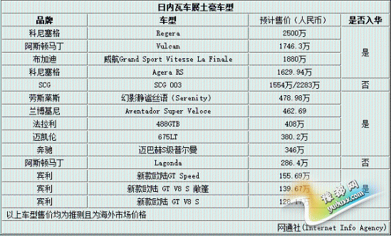 《日内瓦车展14大"土豪"车 最高价超2500万》由河南新闻网-豫都网提供,转载请注明出处:http://auto.yuduxx.com/changjia/156100.html,谢谢合作!