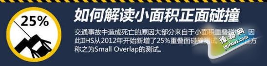 小面积碰撞测试是指受测车辆以时速40英里(约64km/h)的速度,用车辆前端驾驶员一侧大约车宽25%的面积撞击一个5英尺高的刚性障碍壁。由于避开了主要的正面吸能区域(前防撞梁+纵梁),所以前部防撞梁和纵梁几乎吸收不到碰撞能量,障碍物会直接撞到驾驶室上。导致车轮更易侵入驾驶舱以及转向柱仪表盘等部件更容易移位。在同等速度下,25%偏置正面碰撞比40%偏置正面碰撞,对车内乘员造成的伤害严重得多,对驾驶舱要求的强度也要远远高于40%偏置碰撞。