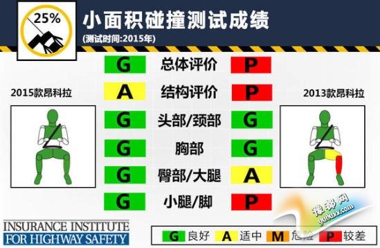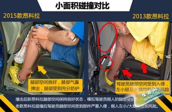 2013款昂科拉的小面积碰撞成绩并不理想,模拟驾驶员假人腿部受伤风险较大。在取得这样的成绩后,别克对2015款新昂科拉的前部结构进行了优化和改进,用以加强在这项严苛的碰撞测试中对车内乘员的保护,因此2015款昂科拉在小面积考核中取得了优异的成绩,在今年的碰撞测试中新车为车内乘员提供了全面的良好防护。(网通社2015年2月13日 北京报道)