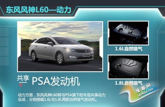 动力方面,东风风神L60将与PSA旗下的车型共享动力总成,分别搭载1.6L与1.8L两款自然吸气发动机。其中,1.6L引擎最大功率86kW,峰值扭矩150Nm,而1.8L发动机最大功率102kW,峰值扭矩172Nm。未来随着风神1.6T引擎的投产,这款引擎也将有望在东风风神L60上使用。 (网通社 2015年3月2日 北京报道)