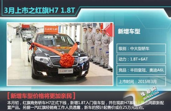 红旗H7现有的动力配置为2.0T和3.0L发动机,为了进一步拓展私人用车市场,红旗特推出搭载1.8T发动机的车型。红旗H7 1.8T的外观变动不大,依旧是走沉稳商务路线。推出的两款配置分别为豪华版和技术版,均是由现款车型的24项配置重新调整而来。