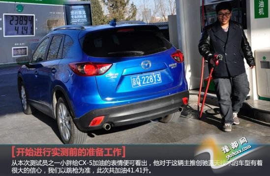 首先我们在下午两点左右开始本次油耗对比测试的第一个环节,在路况较为通常的高速路上进行等速度巡航油耗测试,我们选择了北京四环路和五环路进行测试,其实地点为位于太阳宫中路的中国石化加油站,在测试之前我们首先将车辆加满油,并以加至跳枪为准,以CX-5为例共加油41.41L,共计238.94元。并在测试结束后,再次加油至跳枪,用加油量除以行驶里程就可算出测试车辆每公里平均耗油量。而在加油过程中,从本次测试员之一小胖给CX-5加油的表情便可看出,他对于这辆主推创驰蓝天技术的车型有着很大的信心,而需加95号汽油的上海大众途观则是另一种待遇。