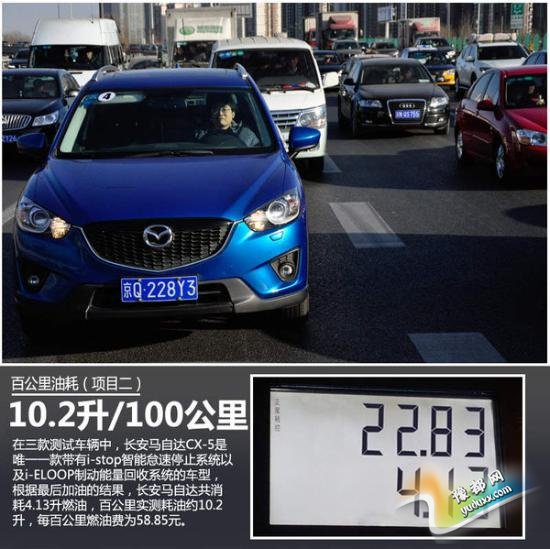 随着我们第二项拥堵城市路段油耗测试的结束,本次针对长安马自达CX-5、东风日产新奇骏以及上海大众途观三款合资紧凑SUV产品的油耗对比测试也告一段落。由上我们可以看出长安马自达CX-5得益于创驰蓝天技术的应用,相比另外两款主要对手而言,在燃油经济性上有着十分明显的优势。同时我们也可看出目前较大排量自然吸气发动机也并未像多数人所认为燃油经济性会略逊于涡轮增压引擎。CX-5便很好证明了这一点,其所采用的2.5L创驰蓝天发动机,相比涡轮增压引擎而言,动力以及燃油经济性均处于领先。(网通社 2015年2月5日 北京报道)