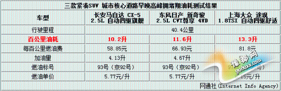 测试项目二:城市核心道路早晚高峰拥堵期油耗对比