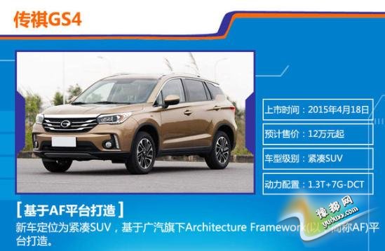 国内SUV车型快速更替的同时,各大车企也在不断完善其SUV产品阵容,而层次不穷的全新车型也更加剧产品之间竞争。面对国内日渐火热的SUV市场,作为自主主力军的广汽传祺仅仅靠GS5系列不足以支撑市场框架和消费者群体。日前,网通社从广汽传祺官方获悉,传祺GS4于今日在上海车展正式上市,预计售价12万元起。