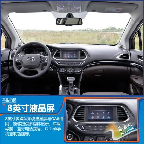 传祺GS4采用“T”字形设计风格,多处采用棱角设计,样式符合年轻群体,中控采用深浅的配色搭配上烤漆材质和镀铬装饰突出内饰氛围。配备四辐式多功能方向盘,仪表盘采用了双圆盘式的设计,其读数刻度长短不同,更加突出立体感。标配车型配备8英寸液晶屏、定速巡航、一键启动、随动倒车影像、ESP、陡坡缓降、上坡辅助灯等,8英寸多媒体系统液晶屏与GA6相同,能够提供多媒体显示、车载导航、蓝牙电话拨号、G-Link手机互联功能等。高配车型额外配有自动启停、AFS随动大灯、胎压监测。此外,主驾驶还支持6向电动调节功能。