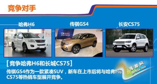 传祺GS4作为一款紧凑SUV,新车在上市后将与哈弗H6、长安CS75等热销车型展开竞争。相比较对手而言,高配置加上动力性能等优势将会成为GS4的主要卖点。GS4今日正式投放市场,完善传祺产品阵容的同时,又将会给同级车带来不小的压力。(网通社 2015年4月18日 北京报道)