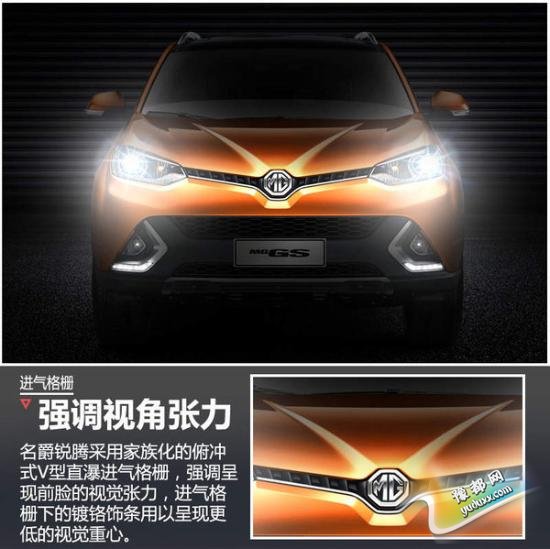 Tony是如何赋予了MG GS名爵锐腾如精灵王子的独特气质,他表示:除了时下流行的设计元素外,自己也会从MG经典跑车MGA和MGB两款车型上汲取设计灵感。首先为了让名爵锐腾拥有家族式的前脸设计,并更加突出它的运动感,采用俯冲式V型直瀑进气格栅,强调呈现前脸的视觉张力,相比旗下的MG3、MG5、MG6、MG GT车型更具冲击力。进气格栅下的镀铬饰条用以呈现更低的视觉重心,镀铬饰条和格栅向外延伸至前灯组,提升车辆整体感的视觉效果。