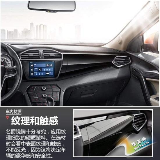 同时在车内工艺和材质的处理上,名爵锐腾十分考究,应用纹理细致的硬质塑料。对此,Tony表示:在选材时他们会看中表面纹理和触感,不能反光,因为这将决定车辆的豪华感和安全性。同时在中控台和内饰板上,采用了大量的钢琴黑色烤漆,符合时下流行趋势。