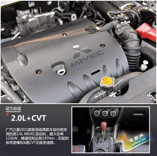 在动力方面,广汽三菱2015款新劲炫两款车型采用的也是老款相同的2.0L MIVEC发动机,最大功率123kW,峰值扭矩达到197Nm,匹配的依然是模拟6速CVT无极变速箱。在驱动形式上,新劲炫2.0L 2015款精英版采用的是前置前驱,尊贵版则采用的是前置四驱。