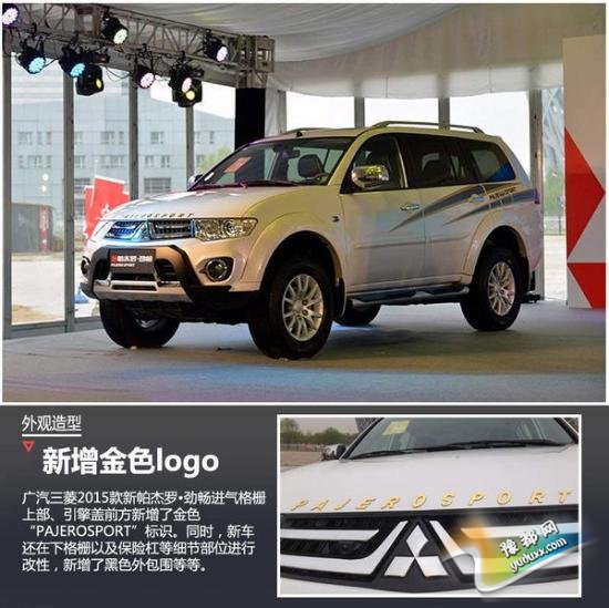 与新劲炫相类似,广汽三菱2015款新帕杰罗劲畅进气格栅上部、引擎盖前方新增了金色“PAJEROSPORT”标识,但三菱logo依然保持不变。另外,新车还在下格栅以及保险杠等细节部位进行改性,新增了黑色外包围等等。