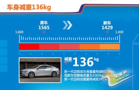 新一代迈锐宝使用通用最新的E2XX平台打造,它是Epsilon平台的改良版,也是通用的四个核心平台之一。未来别克君威、君越、新一代欧宝Insignia等车型也将使用E2XX平台。得益于新平台优势,新一代迈锐宝车身重量将减轻136kg,现款车型整备质量为1565kg,以此测算新一代迈锐宝重量将减至1429kg左右,减幅达到8%,将为整车提供更出色的操控性能及燃油经济性。