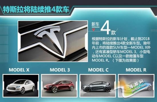 截止到2018年 特斯拉将陆续推出4款全新车型