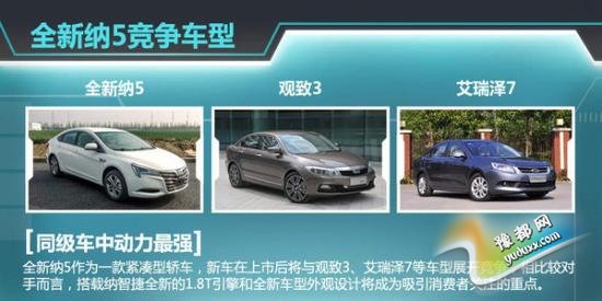 全新纳5作为一款紧凑型轿车,新车在上市后将与观致3、艾瑞泽7等车型展开竞争,相比较对手而言,个性化的品牌与高配置将会成为全新纳5的主要卖点,此外,搭载纳智捷全新的1.8T引擎和车型外观设计也将成为吸引消费者关注的重点。
