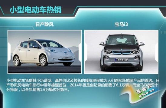 小型电动车凭借其小巧的造型、较长的续航里程以及较低的成本成为全球消费者购买新能源产品的首选。日产聆风凭电动车排行中常年雄踞首位,2014年更是创纪录的销售了6.1万辆。而“季军”选手宝马i3表现十分抢眼,其前半年销量为5,396辆,自去年6月在美国上市、9月在中国上市后一路攀升,最终交出1.6万年销量的成绩单,从2013年第20位的排名跃居第三。