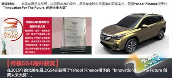 的重要组成部分,也是设计总师张帆加入后的又一力作。在2015年的北美车展上GS4还获得了Yahoo! Finance授予的“Innovation For The Future 创新未来大奖”。其设计、科技配置、