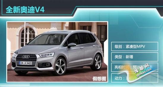 德系三大豪华品牌中奔驰已推出B级车并盘踞西欧MPV市场,宝马紧随其后推出2系Gran Tourer,奥迪也推出了MPV计划以填补这款市场的空缺。这款新车将基于大众MQB平台研发设计并有望与大众途安共享平台,类似于A3与高尔夫的关系。外观设计上,该车依然沿用全新奥迪家族式设计,由于定位于MPV这样偏向实用性的车型,内部空间将更加宽裕,有望采用“2+3+2”的七座布局。动力方面新车将搭载大众1.4T与1.8T两款发动机,高配车型将配备Quattro四驱系统。