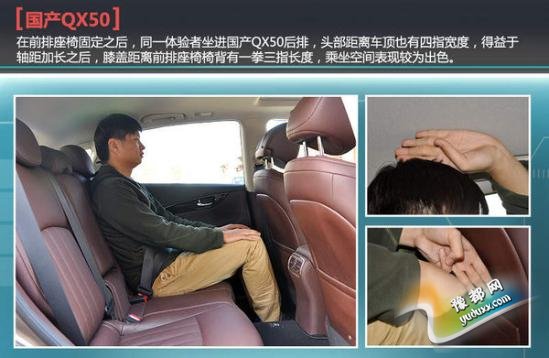 正如光有理论、没有实践不足以证明一条定理,光凭数据也不足以吸引愈加理性化的消费者,从实际体验来看,当身高184cm的体验者坐进国产QX50的驾驶席,把座椅调整到适当位置,头部有四指左右的空间,对于身高190cm的驾驶者没有任何问题。随后,来到国产QX50的后排空间,同样的体验者坐进后排,把座椅调整到最佳姿势,其头部空间也拥有四指的空间,得益于轴距的加长,腿部空间相对较大,有一拳三指有余的空间,为后排乘客提供了更加舒适的乘坐感受。
