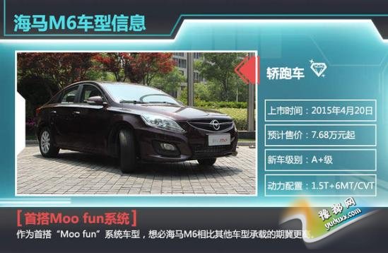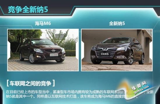 该系统首先搭载的是海马汽车最新产品M6上,厂家给该车的定位是一台A+级的轿跑车,车联网技术的加入使得该车理念上更加前卫。同时,“moofun”系统将搭载于该车全系上,这一点相当厚道,而未来海马的新车型也将陆续搭载此系统。在目前已经上市的车型当中,紧凑型车市场内拥有较为成熟的车联网系统的产品并不多,全新纳5就是其中一个。同样是以互联网技术打造,全新纳5的“Tink+”系统已经升级到了2.0,该车将成为海马M6的直接竞争对手。
