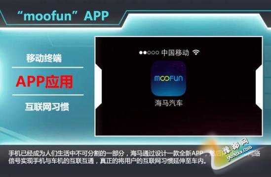 如何实现“moofun”系统与人、与车完美对接,从而实现这一理想状态,海马在移动终端上给出了我们答案。手机已经成为人们生活中不可分割的一部分,海马通过设计一款全新APP,然后再借助3G网络信号实现手机与车机的互联互通,真正的将用户的互联网习惯延伸至车内,不仅方便而且更加符合人们生活习惯,这也是一种全新移动互联车生活理念的体现。