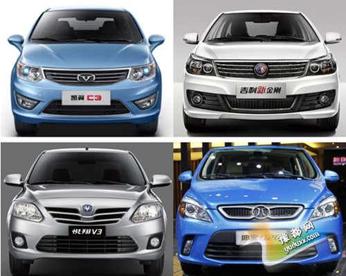 根据产品特点、售价区间、品牌定位几大主要因素,我们选择了凯翼C31.5L金钻版、吉利新金刚三厢1.5L手动进取型、悦翔V31.3L豪华版、北汽绅宝D20三厢1.3L乐天手动版四款车型进行对比,“厮杀”的场面马上呈现。