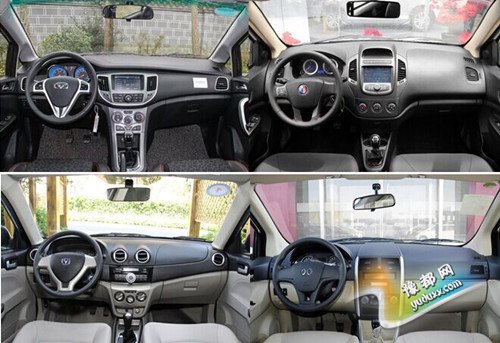 二、内饰:凯翼C3更显档次,品质感突出;吉利新金刚呈现家居风格;悦翔V3略显复古;绅宝D30简洁流畅
